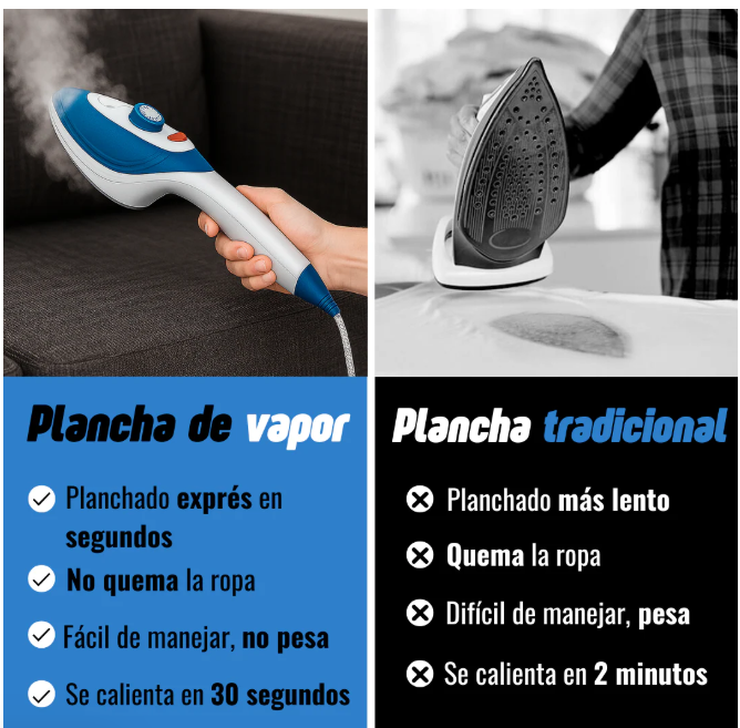 😩 La plancha común es lenta, pesada, y puede dañar tus prendas.